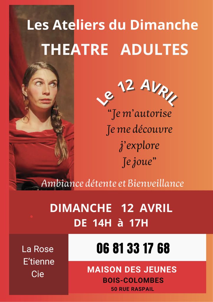 “Les Ateliers du Dimanche”, stage théâtre adultes (un dimanche par mois).(pour découvrir et/ou s’entraîner)