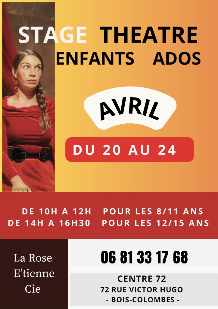 | Proposés par La Rose E’tienne Cie, ils seront animés du 20 au 24 avril par Lise Choquier, auteure et metteure en scène, qui enseigne le théâtre depuis plus de vingt ans. |
